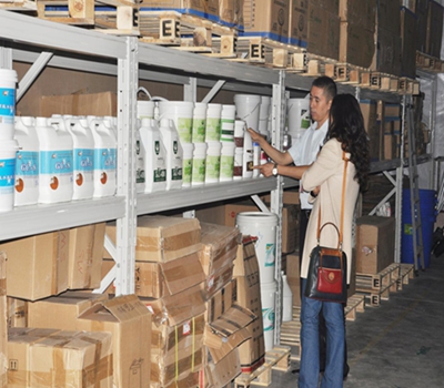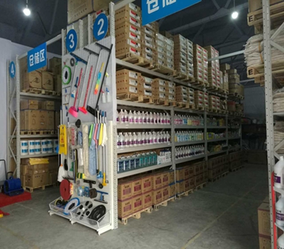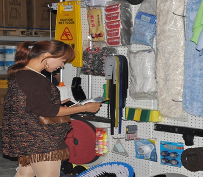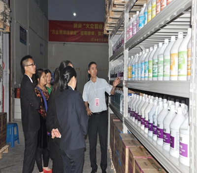 清洁讲堂第二讲结束后,汪经理带领客户参观仓储区,讲解了各类产品的性能、特点及使用。
