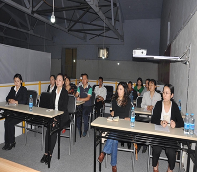 (图片四、公司资深品质培训部汪经理讲解保洁员仪容仪表)